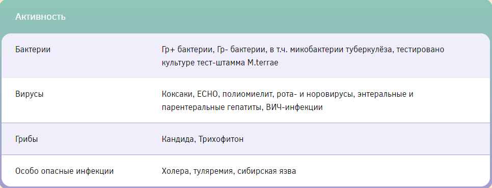 Готовый раствор для дезинфекции ИМН, дезинфекции высокого уровня и стерилизации ИМН, в том числе эндоскопов. Обладает вирулицидным, бактерицидным, фунгицидным и спороцидными свойствами.